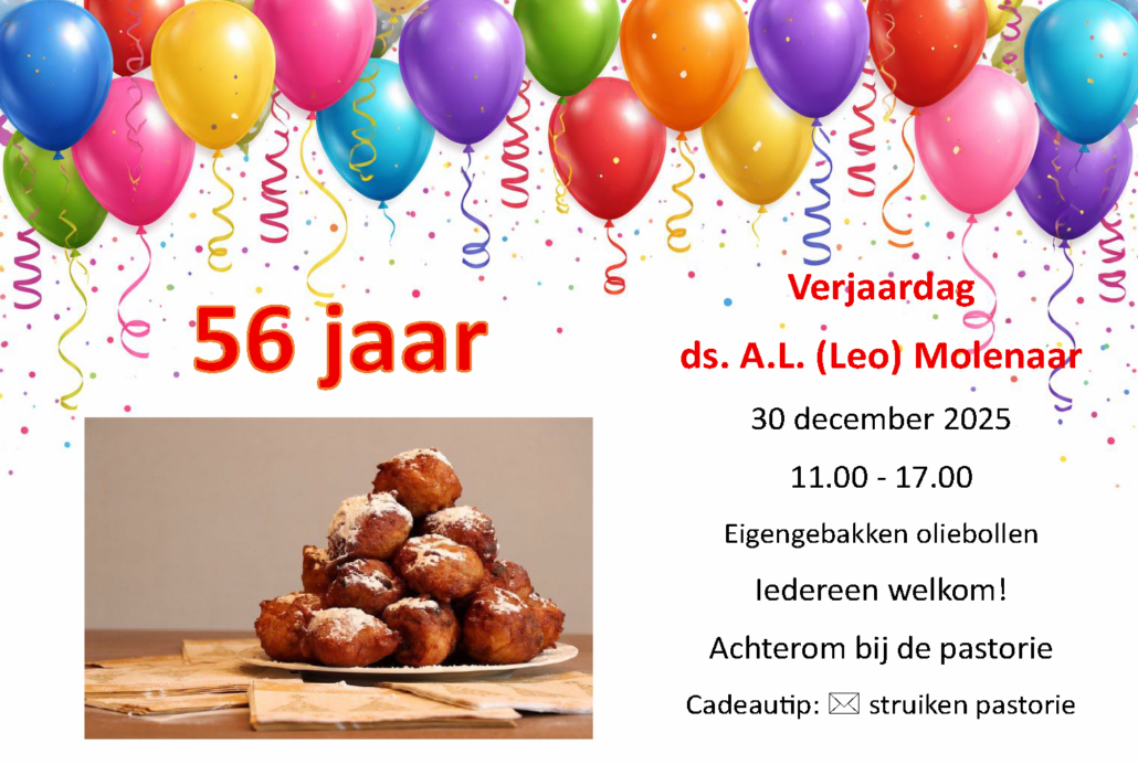 Uitnodiging verjaardag ds. Molenaar20 december 2025/in Nieuws/door kerkadmin https://www.pkn-ameide-tienhoven.nl/wp-content/uploads/2025/12/cake-6274123_1280.jpg 853 1280 kerkadmin https://www.pkn-ameide-tienhoven.nl/wp-content/uploads/2023/06/Logo-1-kleur-300x213.png kerkadmin2025-12-20 18:38:462025-12-20 18:38:46Uitnodiging verjaardag ds. Molenaar