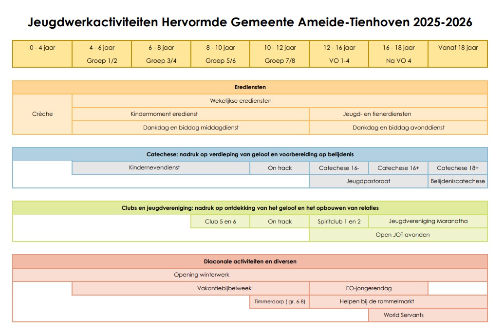 Ook dit seizoen worden er weer diverse jeugdactiviteiten georganiseerd binnen onze kerk. We zien samen met jou uit naar een mooi seizoen, waarin we elkaar mogen ontmoeten en God beter mogen leren kennen. Wil je weten wat er allemaal op de planning staat? Bekijk dan onderstaand overzicht.